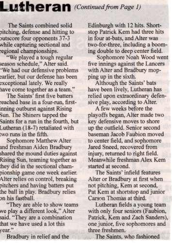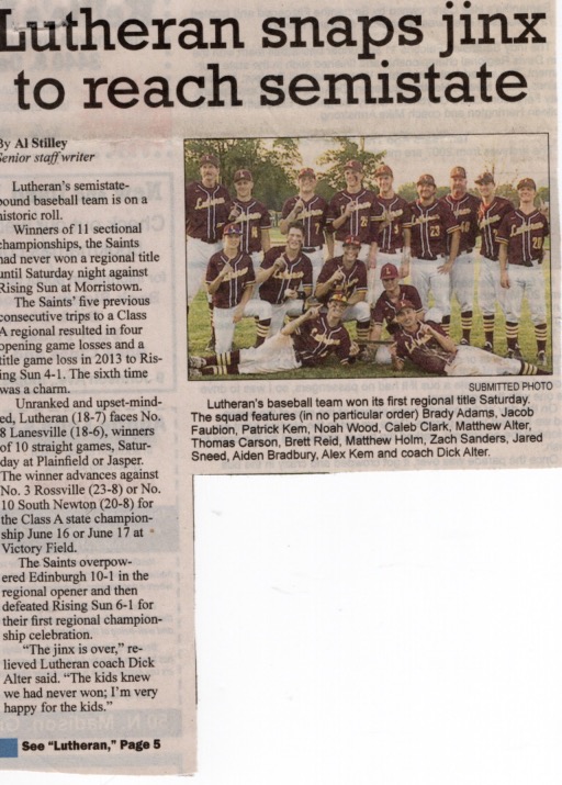 Our team lost in the Semi-State to eventual State Champion, Lanesville High School. This team had the best team spirit and synergy of my Lutheran teams, and there were some pretty great teams. This group of teammates played for each other and had a great season. We found the right recipe for success and the baseball gods looked down on us favorably! Certainly, the success of this team was unexpected, but